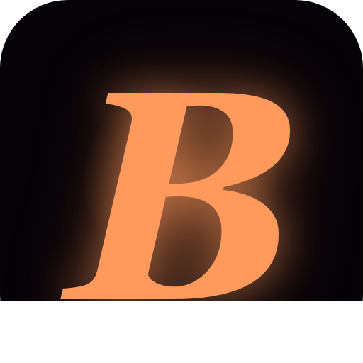 App icon (large)512 × 512 PNG. Italic B mark on void background.